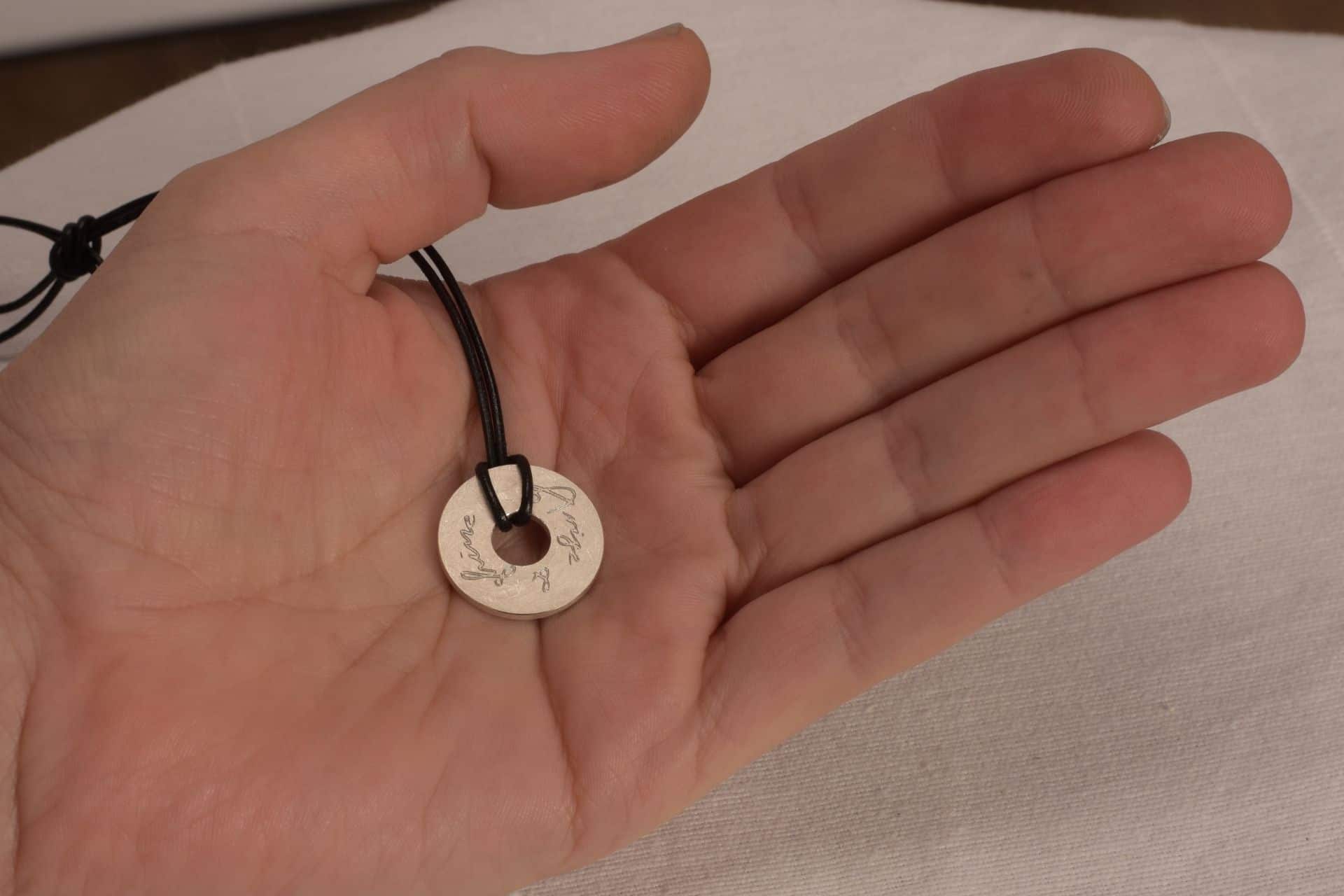 Mit dabei ist ein feines Lederband aus Ziegenleder.