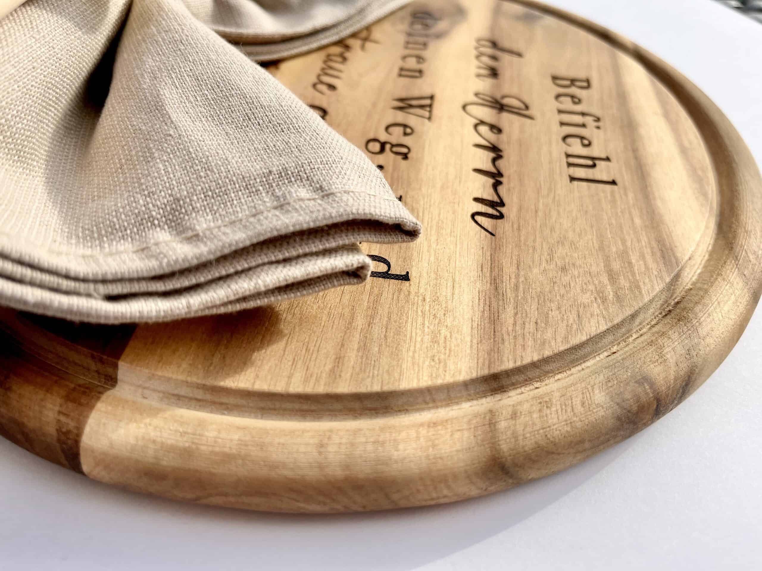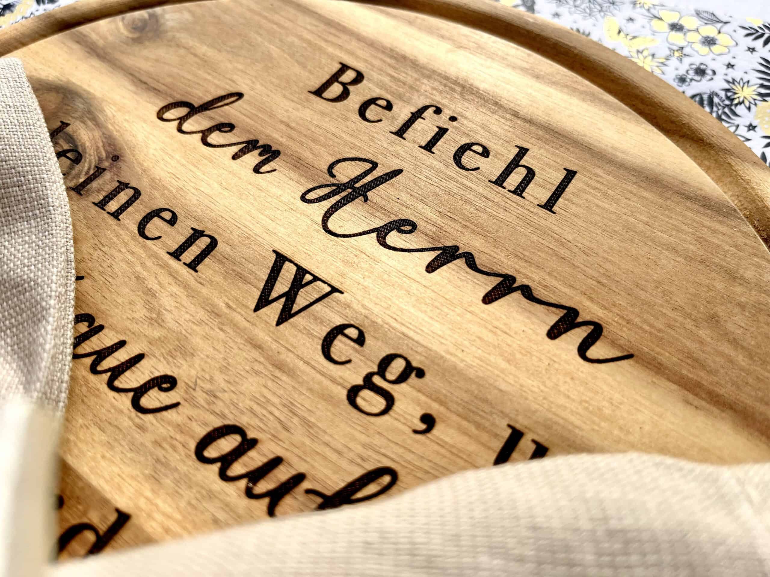 • Rundes Holzbrett mit Gravur (christlicher Bibelvers)