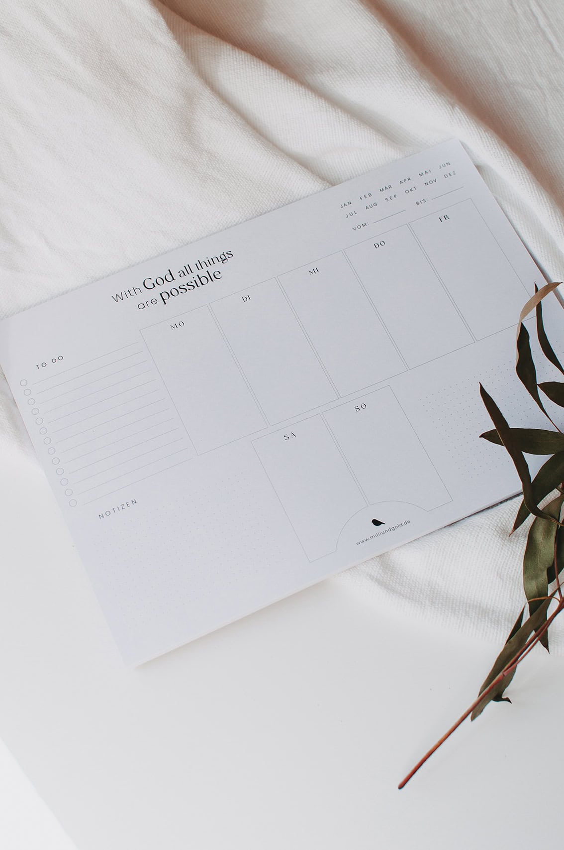 Mit diesem Wochenplaner kannst du deine Woche übersichtlich planen! Neben den großzügigen Flächen für die einzelnen Wochentage hast du auf 50 Blättern Platz für eine Ermutigung, Raum für Notizen und To Do’s. Das edle Schwarz-Weiß bietet Platz für deine farbigen Ideen!