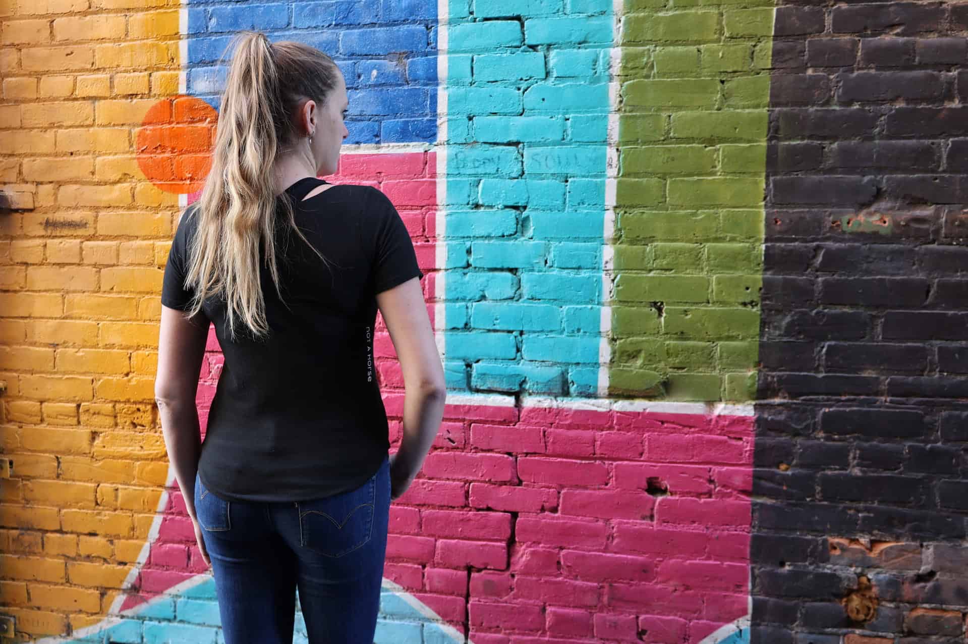 Junge Menschen in schwarzer Kleidung vor Graffiti-Wand, christliche Marke, christliche Mode, christliche Lifestyle, Mookho.de.
