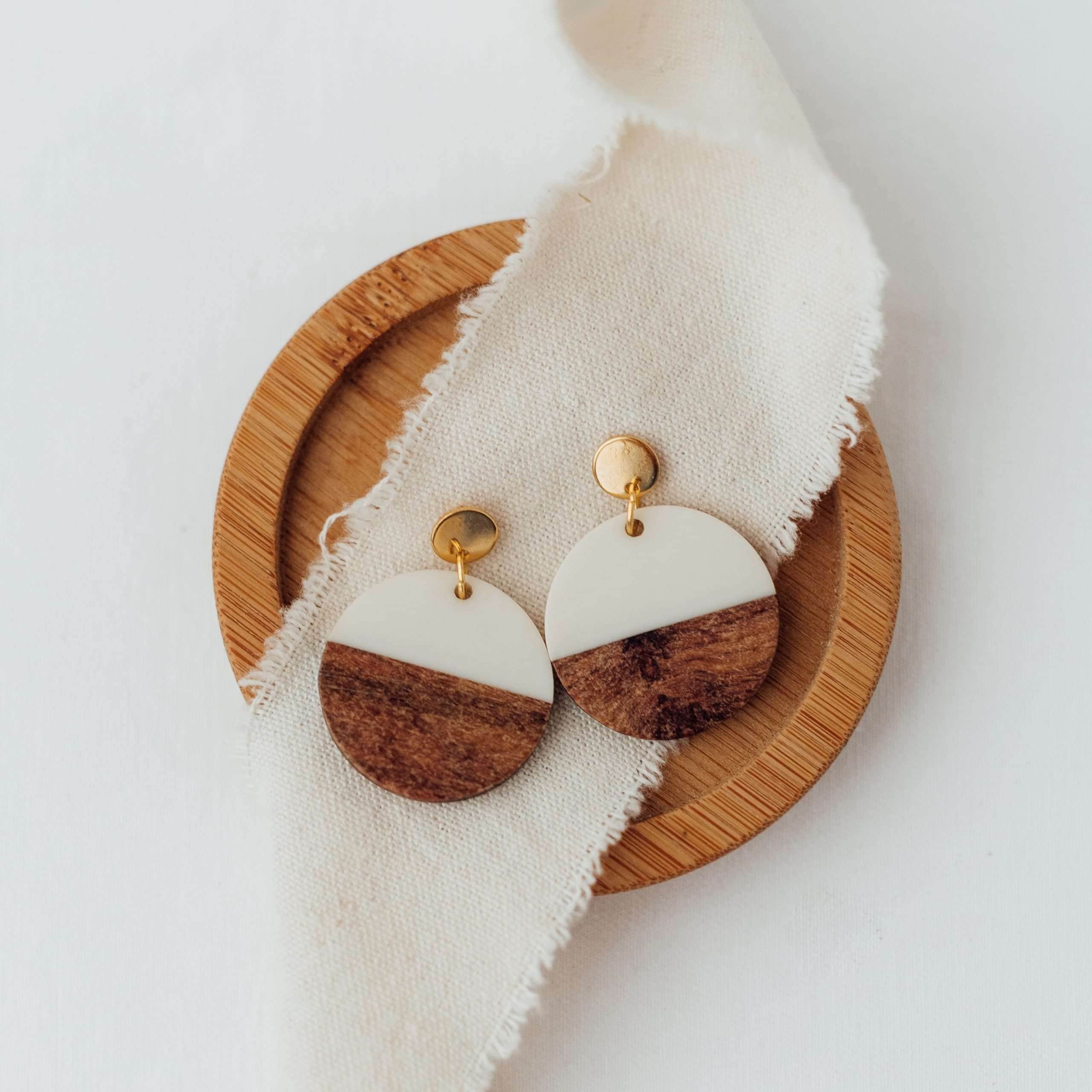 Der kreisrunde Anhänger aus der Wooden-Collection strahlt durch seine puristische Schönheit, die sowohl elegant als auch natürlich anmutet. Er besteht aus einer Kombination aus Holz und Harz sowie einem goldfarbenen, sehr gut verträglichen Edelstahlstecker.