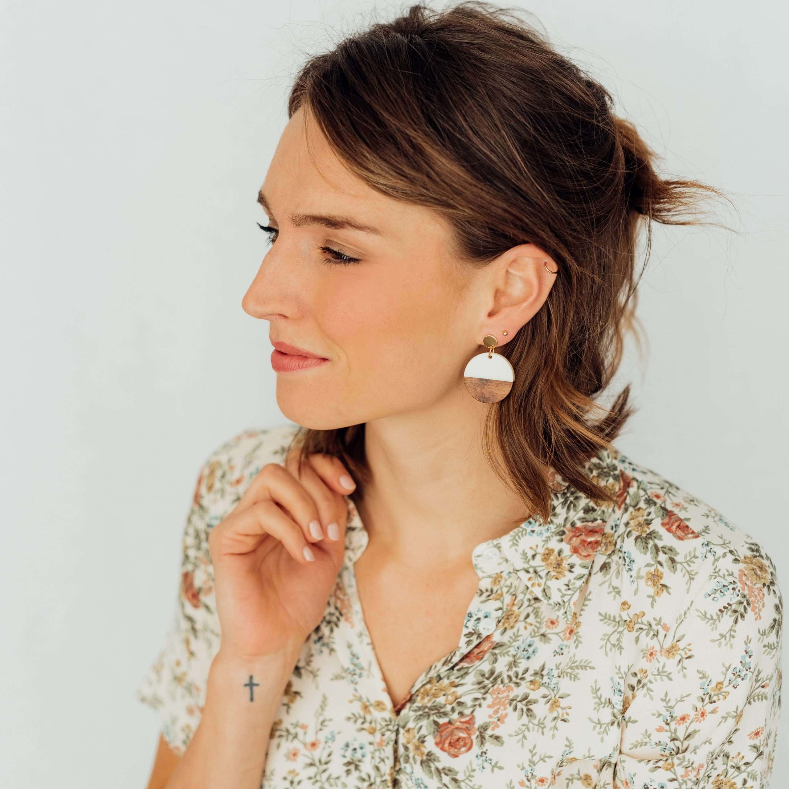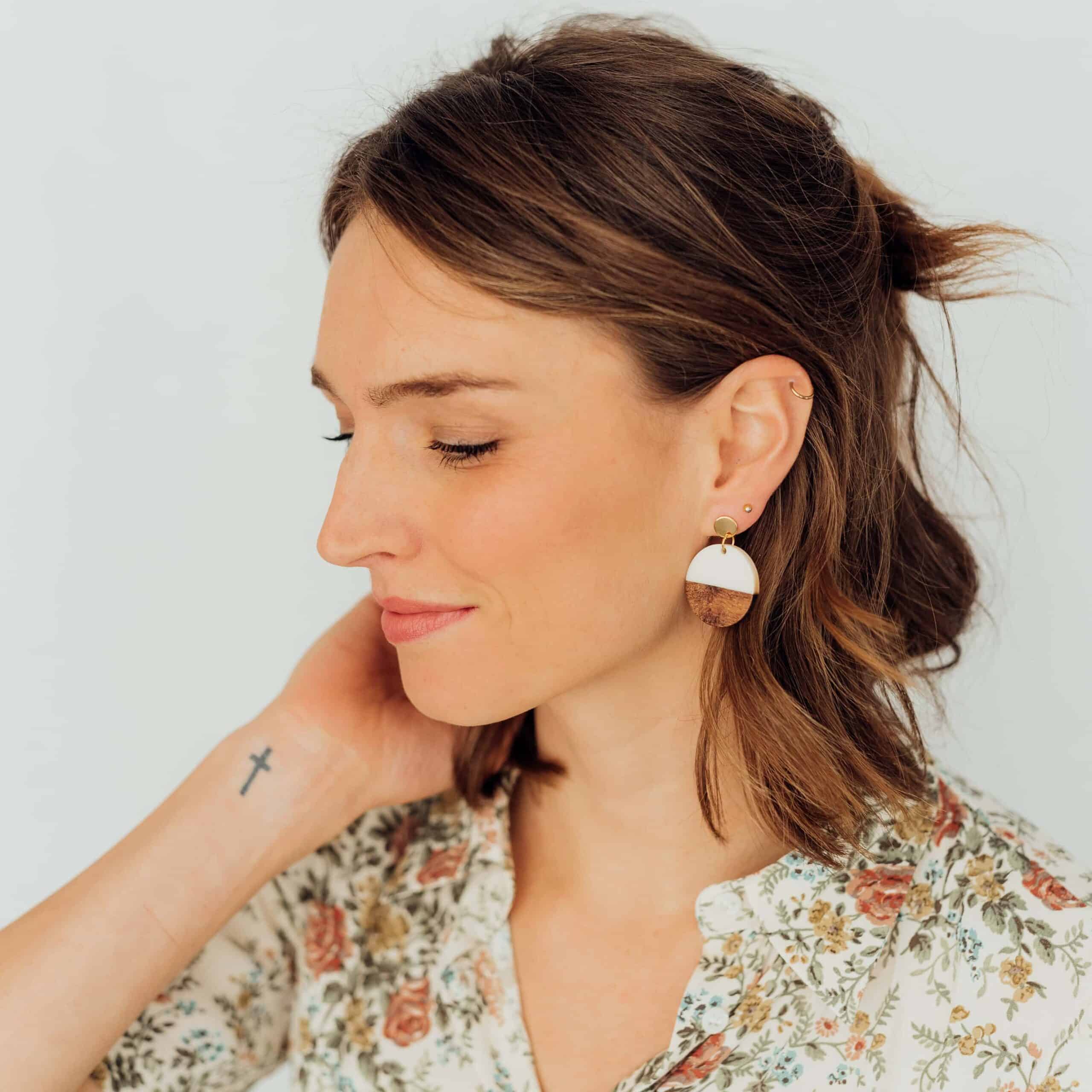 Christlicher Ohrring: Holz / Harz