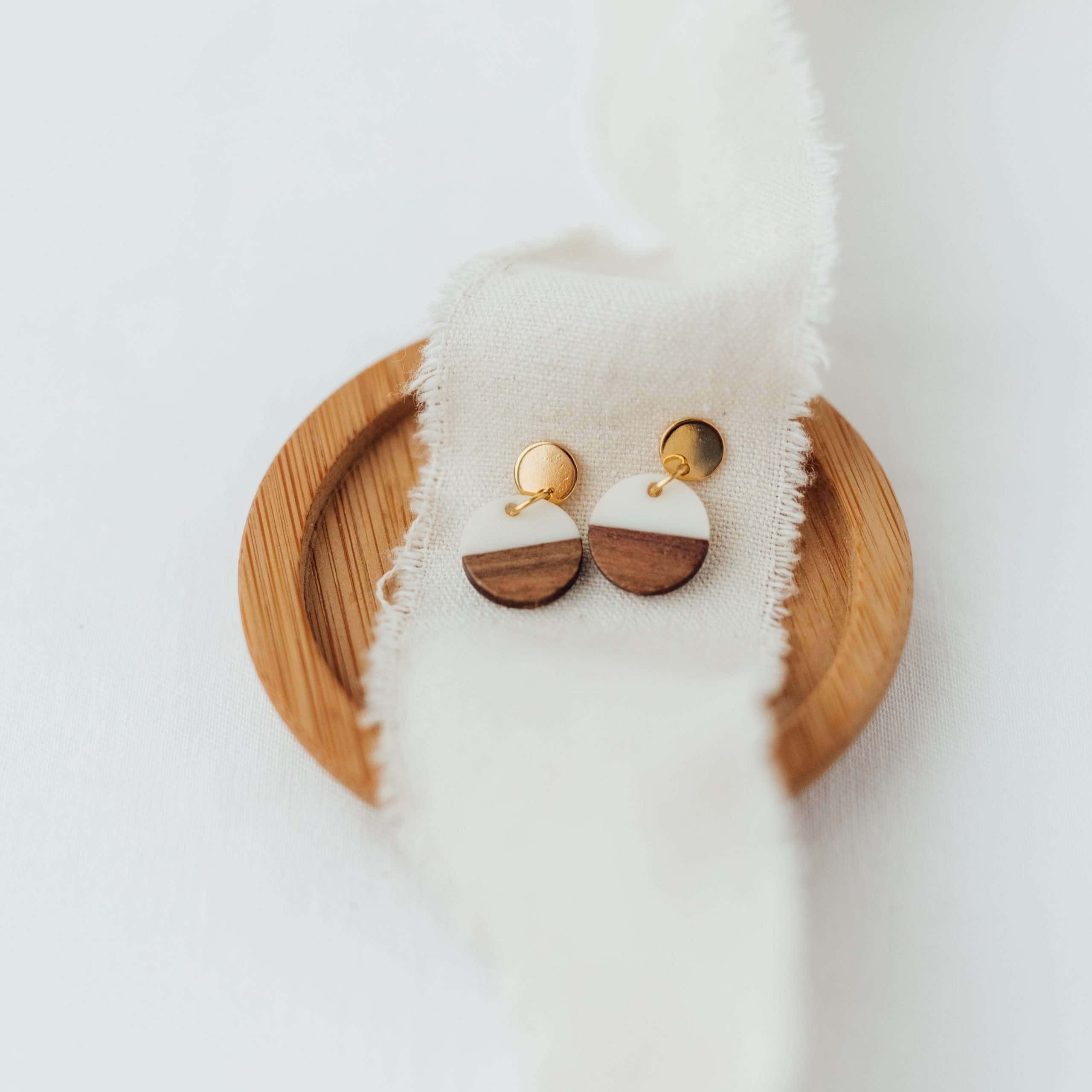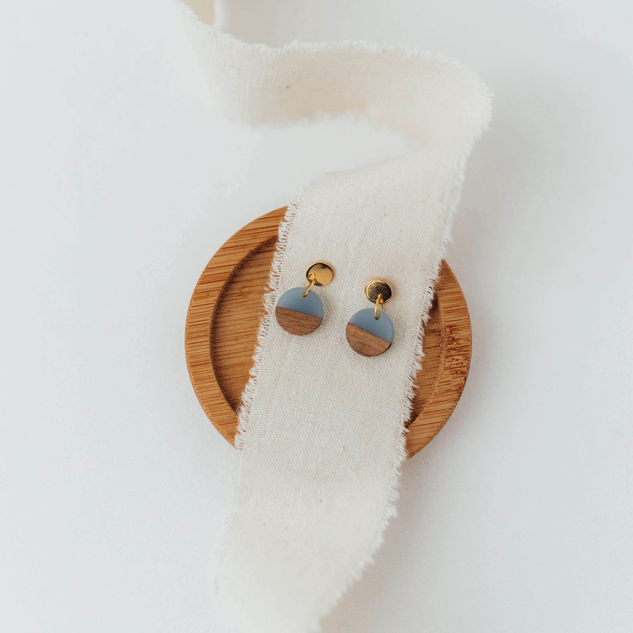 Der kleine kreisrunde Anhänger aus der Wooden-Collection strahlt durch seine puristische Schönheit, die sowohl elegant als auch natürlich anmutet. Er besteht aus einer Kombination aus Holz und Harz sowie einem goldfarbenen, sehr gut verträglichen Edelstahlstecker. Als Variation gibt es das Harz in den Farben schwarz, weiß und grau-blau.
