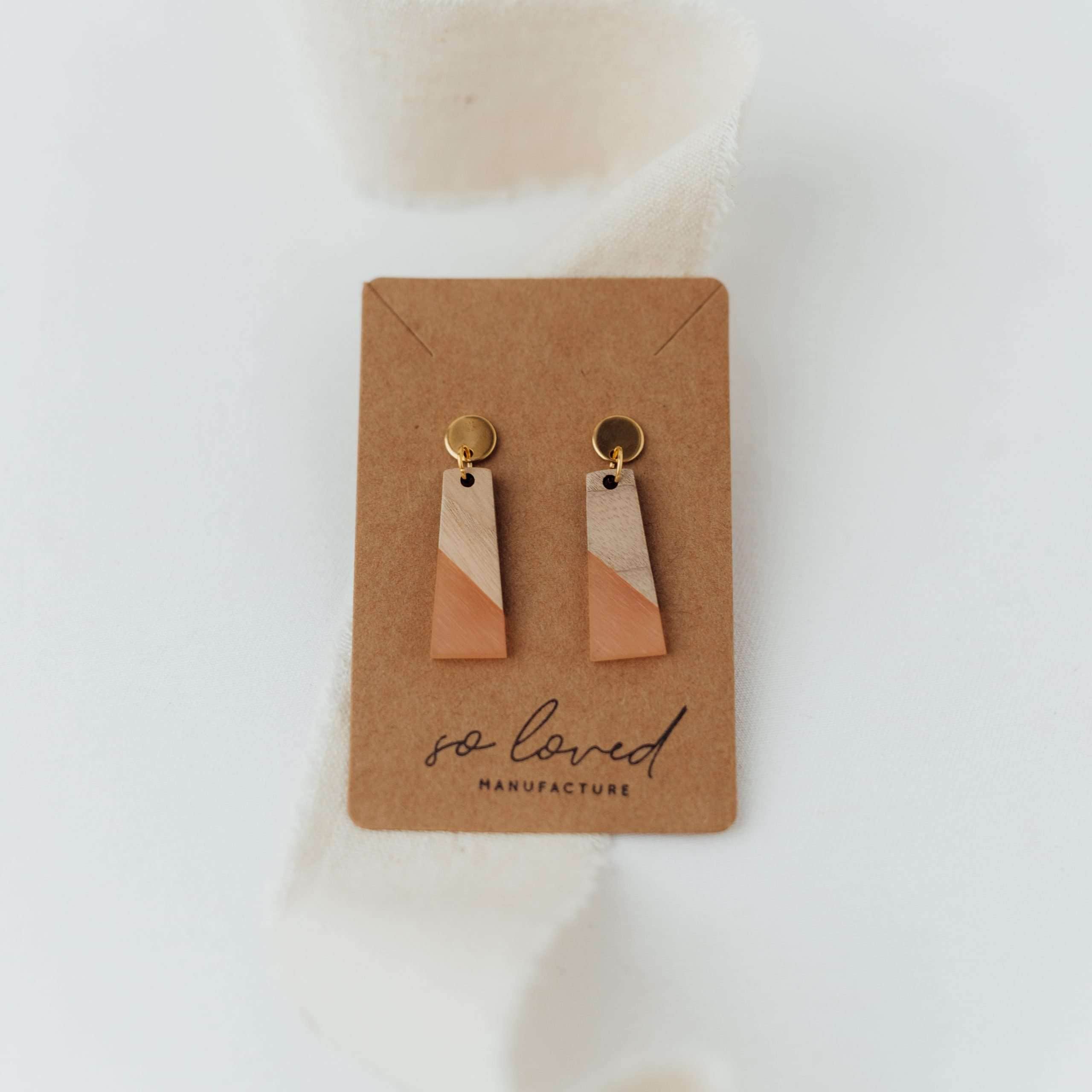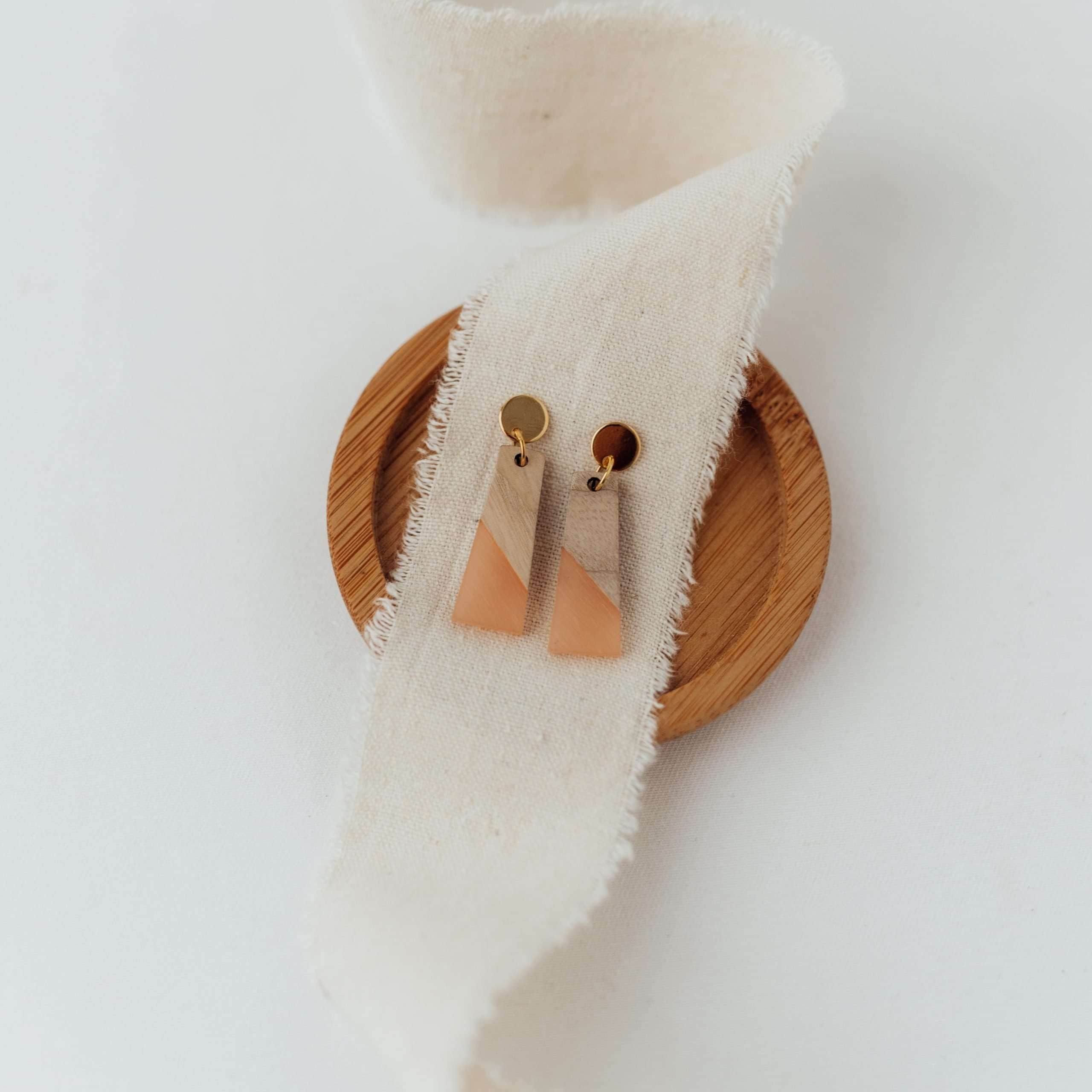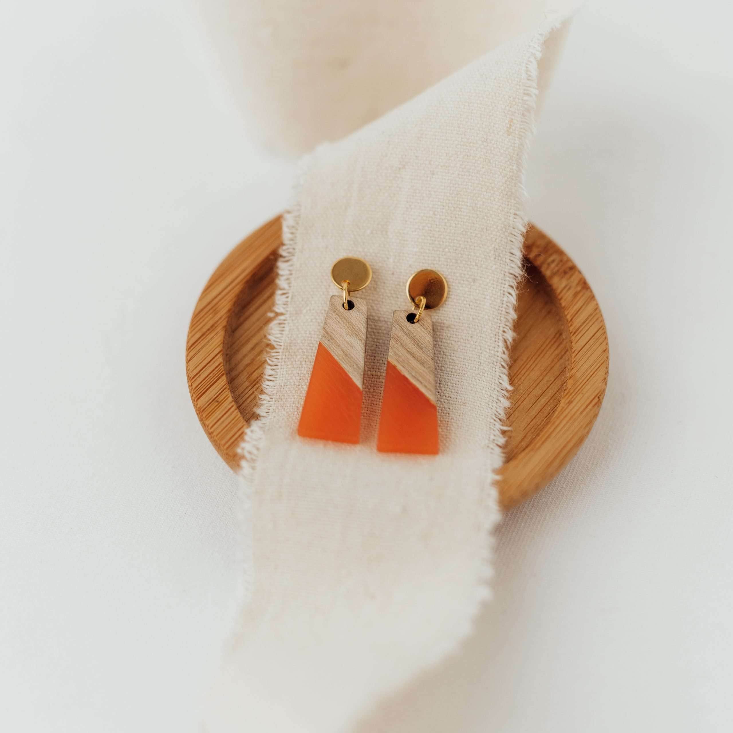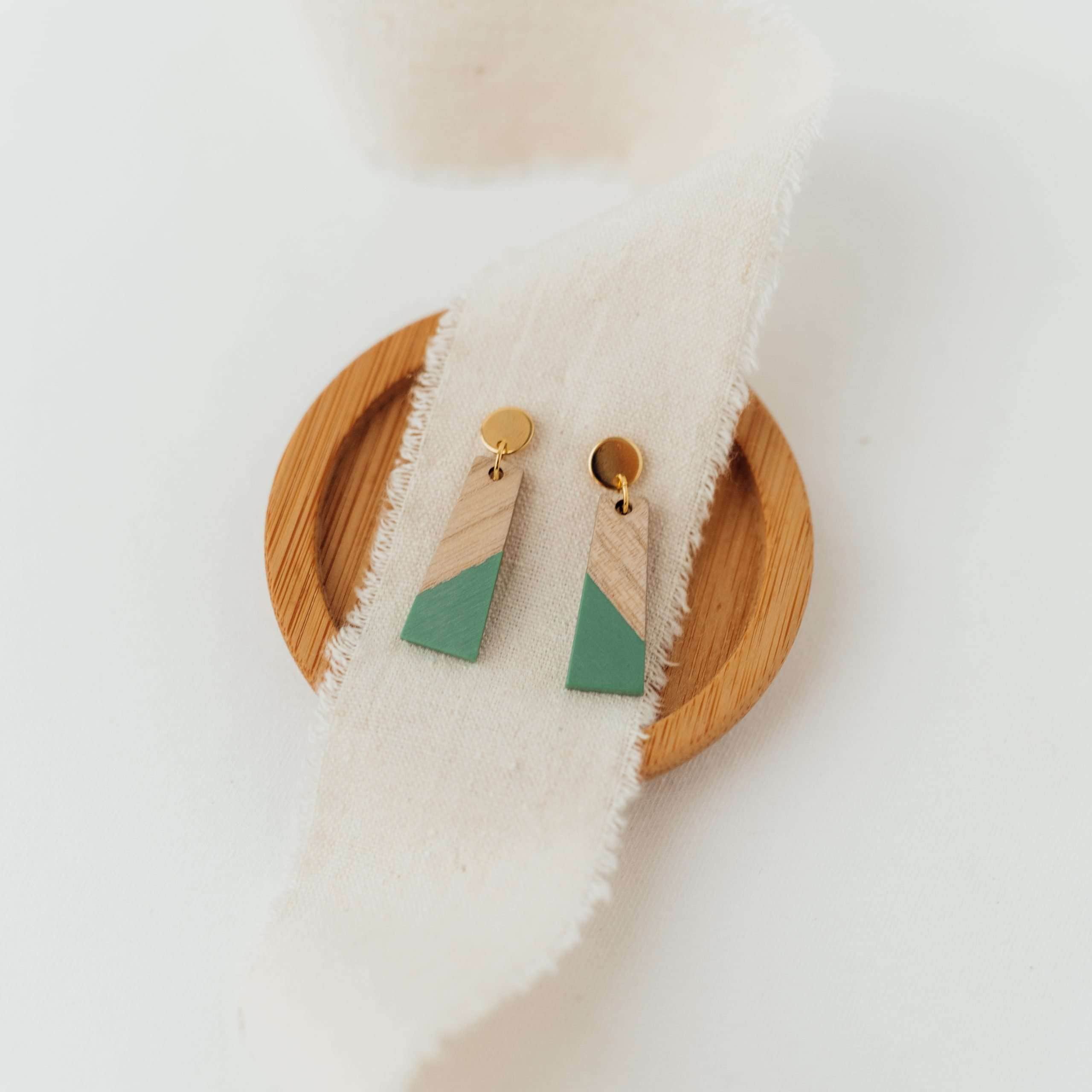 Der trapezförmige Anhänger aus der Wooden-Collection strahlt durch seine puristische Schönheit, die sowohl elegant als auch natürlich anmutet. Er besteht aus einer Kombination aus Holz und Harz sowie einem goldfarbenen, sehr gut verträglichen Edelstahlstecker. Als Variation gibt es das Harz in den sanften Farbentönen grün, rosa und rot.